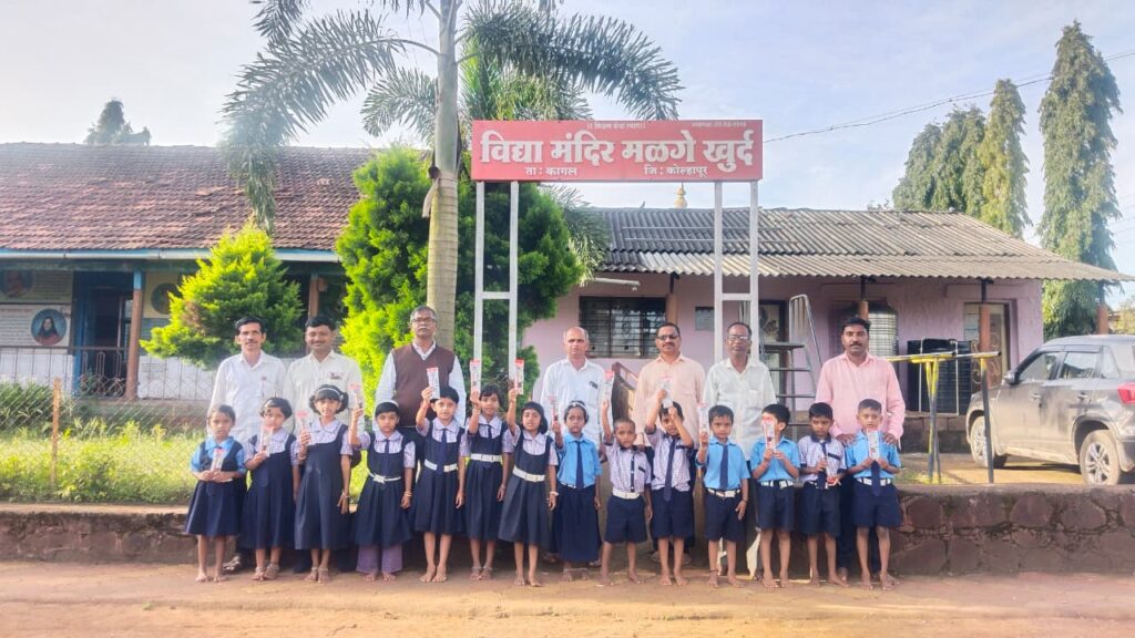 कागल प्रतिनिधी: ग्रामीण भागातील मुला मुलींचा शैक्षणिक दर्जा वाढावा यासाठी जिल्हा परिषद अंतर्गत शाळा यांच्यामध्ये मुलांच्या संख्येची वाढ व्हावी व जिल्हा परिषद शाळेत विविध कलागुणांना संधी मिळावी या उद्देशाने पगारिया वेल्फेअर फाउंडेशन मुंबई यांच्या वतीने विद्या मंदिर मळगे खुर्द तालुका कागल या शाळेमध्ये इयत्ता पहिली ते तिसरी या वर्गातील विद्यार्थ्यांना शालेय साहित्य वाटप करण्यात आले.