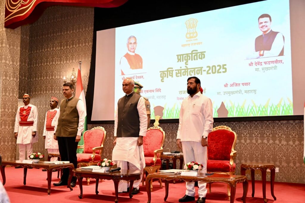 मुंबई :महाराष्ट्र और गुजरात के राज्यपाल **आचार्य देवव्रत** ने आज (24 अक्टूबर) मुंबई स्थित **राजभवन** में “प्राकृतिक खेती**” विषय पर आयोजित एक विशेष संगोष्ठी में राज्य के मंत्रिपरिषद सदस्यों, विधायकों और वरिष्ठ अधिकारियों को संबोधित किया।इस अवसर पर **मुख्यमंत्री देवेंद्र फडणवीस**, **उपमुख्यमंत्री एकनाथ शिंदे**, **विधान परिषद के सभापति राम शिंदे**, उपसभापति डॉ. नीलम गोरे**, मंत्री, राज्यमंत्री, **मुख्य सचिव राजेश कुमार**, और विभिन्न विभागों के सचिव व अधिकारी उपस्थित थे।🌾 *राज्यपाल देवव्रत बोले – “जैविक और प्राकृतिक खेती में है मूलभूत अंतर”*राज्यपाल ने अपने संबोधन में *जैविक (ऑर्गेनिक) खेती* और *प्राकृतिक खेती* के बीच का अंतर स्पष्ट करते हुए कहा –> “जैविक खेती में कुछ बाहरी जैविक तत्वों का उपयोग किया जाता है, जबकि प्राकृतिक खेती पूरी तरह से प्रकृति पर आधारित होती है। इसमें मिट्टी, पानी और पर्यावरण का संतुलन बनाए रखते हुए फसल उत्पादन किया जाता है।”उन्होंने कहा कि *प्राकृतिक खेती केवल कृषि पद्धति नहीं, बल्कि जीवन जीने की एक विचारधारा है*, जो मिट्टी की सेहत, जल संरक्षण और मानव स्वास्थ्य – तीनों को साथ लेकर चलती है।–