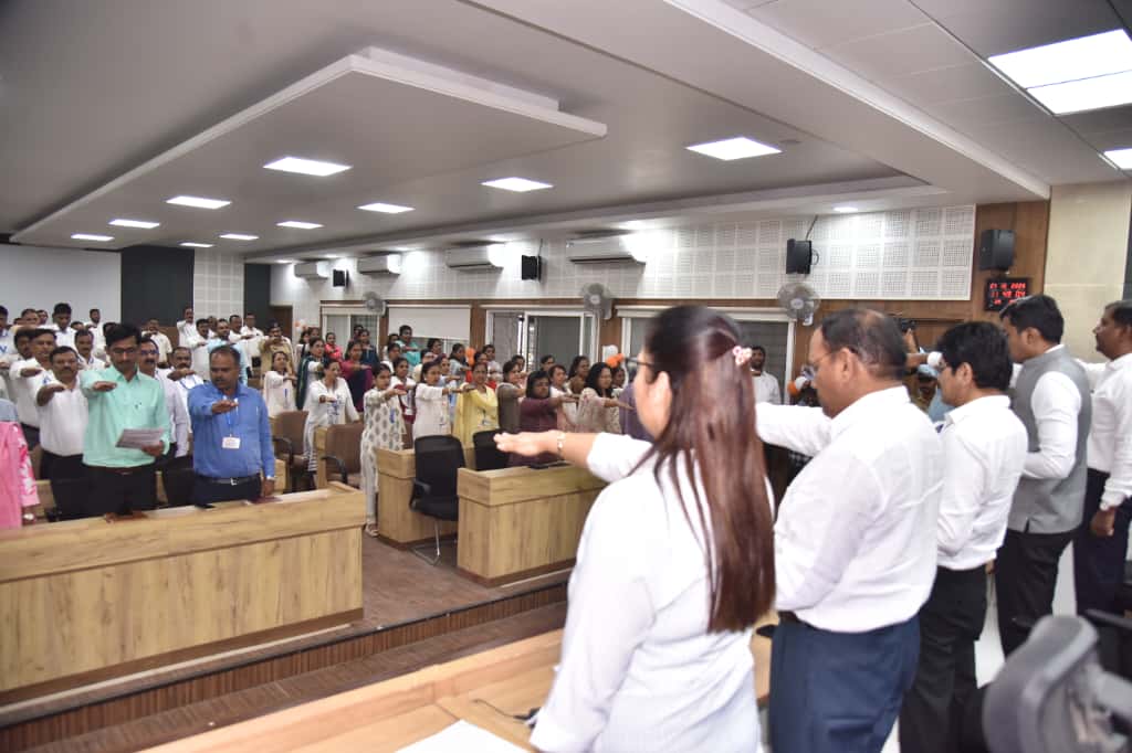 या शब्दांत जिल्हाधिकारी कार्यालयात आज अधिकाऱ्यांनी भ्रष्टाचारमुक्त प्रशासनासाठी शपथ घेतली.