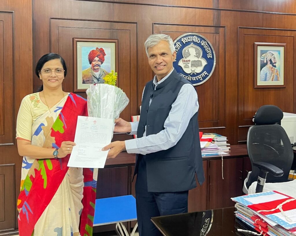दि.30 ऑक्टोबर – शिवाजी विद्यापीठातील जैवतंत्रज्ञान अधिविभागाचे प्रमुख प्रा.डॉ.ज्योती जाधव यांची विद्यापीठाच्या प्रभारी प्र-कुलगुरूपदी नियुक्ती करण्यात आली. प्रभारी कुलगुरू प्रा.सुरेश गोसावी यांनी प्रभारी प्र-कुलगुरूपदी डॉ.जाधव यांची नियुक्ती केली. दरम्यान, प्रभारी प्र-कुलगुरू पदासाठी त्यांच्या नावाची शिफारस आज (गुरूवारी) झालेल्या व्यवस्थापन परिषदेत केली. व्यवस्थापन परिषदेनेही त्यास संमती दिली. प्रभारी कुलगुरू प्रा.गोसावी यांनी आज सायंकाळी डॉ.जाधव यांना प्रभारी प्र-कुलगुरूपदी नियुक्ती केल्याविषयी पत्र दिले. तसेच, विद्यापीठ प्रशासनाकडून याबाबत मा.कुलपती कार्यालयाला कळविण्यात आले. प्रा.डॉ.ज्योती जाधव यांनी आज आपल्या पदाचा कार्यभार स्वीकारला.डॉ.जाधव हया जागतिक आघाडीच्या शास्त्रज्ञांमध्ये समाविष्ट असलेल्या ज्येष्ठ संशोधक आहेत. त्यांनी विज्ञान व तंत्रज्ञान विभागाच्या अधिष्ठाता म्हणून काम केले आहे. शिवाजी विद्यापीठात नियमित प्र-कुलगुरू नियुक्त होईपर्यंत त्यांचा प्रभारी प्र-कुलगुरूपदाचा कार्यकाल राहणार आहे.दरम्यान, आज सायंकाळी प्रभारी कुलगुरू प्रा.सुरेश गोसावी, कुलसचिव डॉ.विलास शिंदे यांनी पुष्पगुच्छ देऊन डॉ.ज्योती जाधव यांचे अभिनंदन व स्वागत केले.