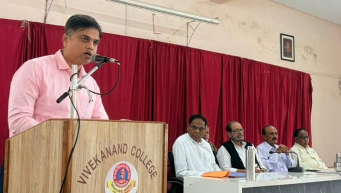 शिक्षणमहर्षी डॉ. बापूजी साळुंखे स्मृतिभवन, कोल्हापूर येथे पुणे विभाग शिक्षक मतदार नोंदणीसाठी आयोजित सहविचार सभेत ते बोलत होते. सभेच्या अध्यक्षस्थानी मा. प्राचार्य अभयकुमार साळुंखे, कार्याध्यक्ष, श्री स्वामी विवेकानंद शिक्षण संस्था, होते.