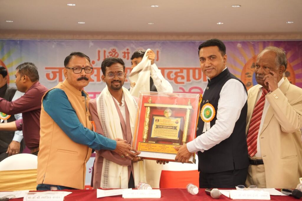महेश्वर जयसिंग जंगम स्वामीजी ( 🕉️भाग्यसंकेत ज्योतिष कार्यालय पेठवडगाव )यांना रत्नालंकार ,ज्योतिष गौरव , व गुणवंत विद्यार्थी पुरस्कार या तीन पुरस्काराने मा श्री प्रमोदजी सावंत साहेब ( गोवा राज्य लोकप्रिय मुख्यमंत्री ) व मा श्री दामू नाईक साहेब भाजपा प्रदेशाध्यक्ष यांच्या हस्ते सन्मानित करण्यात आले.