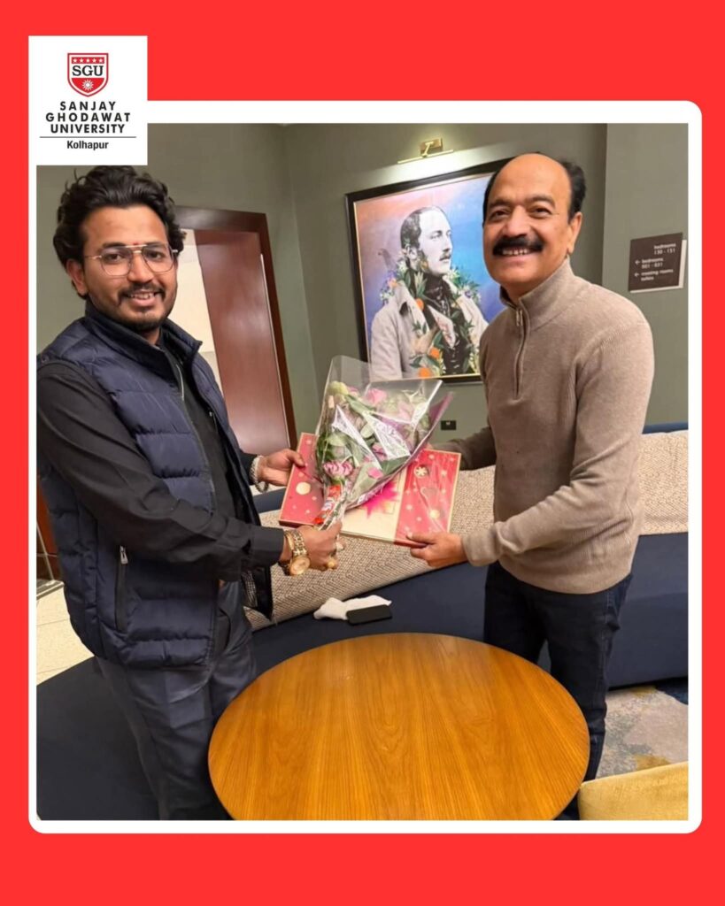 Mr.Vinayak Bhosale Trustee of Sanjay Ghodawat University (SGU), met Ms. Rajvaibhavi Satyajeet Manugade,an SGU alumnus, during a special interaction in London. The meeting focused on discussing the experiences and challenges faced by students abroad — from academic integration to exploring global career opportunities.
