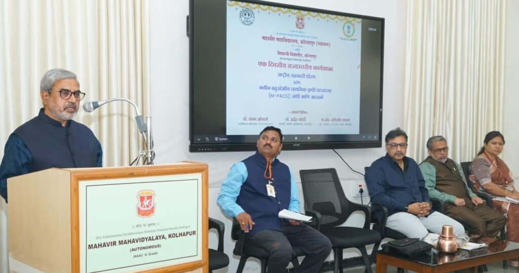 कोल्हापूर : महावीर महाविद्यालयाच्या अर्थशास्त्र विभागाच्या वतीने “राष्ट्रीय सहकार धोरण आणि नवीन बहुउद्देशीय सहकारी पतपुरवठा संस्था – संधी आणि आव्हाने” या विषयावर राष्ट्रीय कार्यशाळेचे आयोजन करण्यात आले. या कार्यशाळेच्या उद्घाटन प्रसंगी बोलताना महाराष्ट्र राज्याचे माजी सहकार अप्पर आयुक्त श्री. आनंद जोगदंड यांनी सहकार क्षेत्राच्या भविष्यासंदर्भात महत्त्वपूर्ण मार्गदर्शन केले.