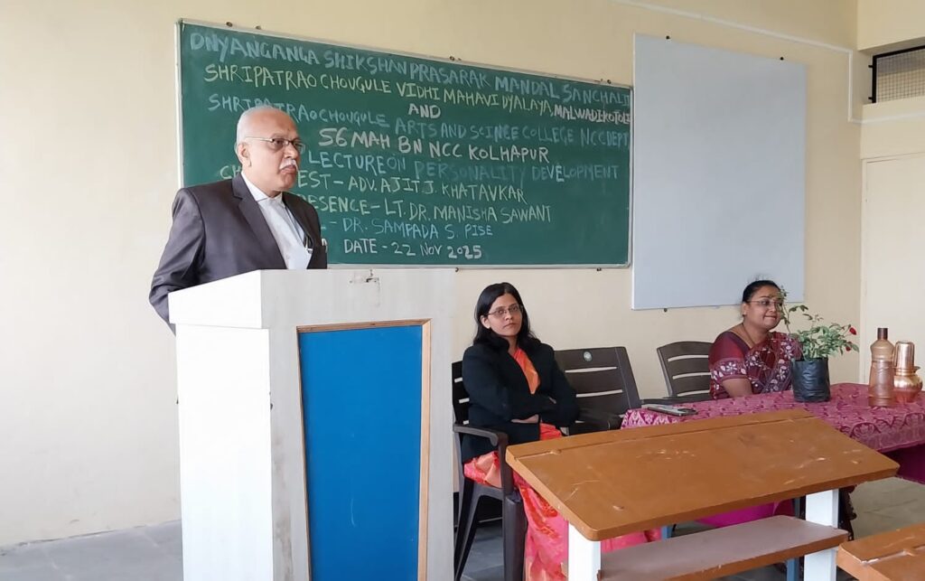 श्रीपतराव चौगुले विधी महाविद्यालयात व्यक्तिमत्व विकास या विषयावर आयोजित व्याख्यानात ते विद्यार्थ्यांना मार्गदर्शन करत होते.