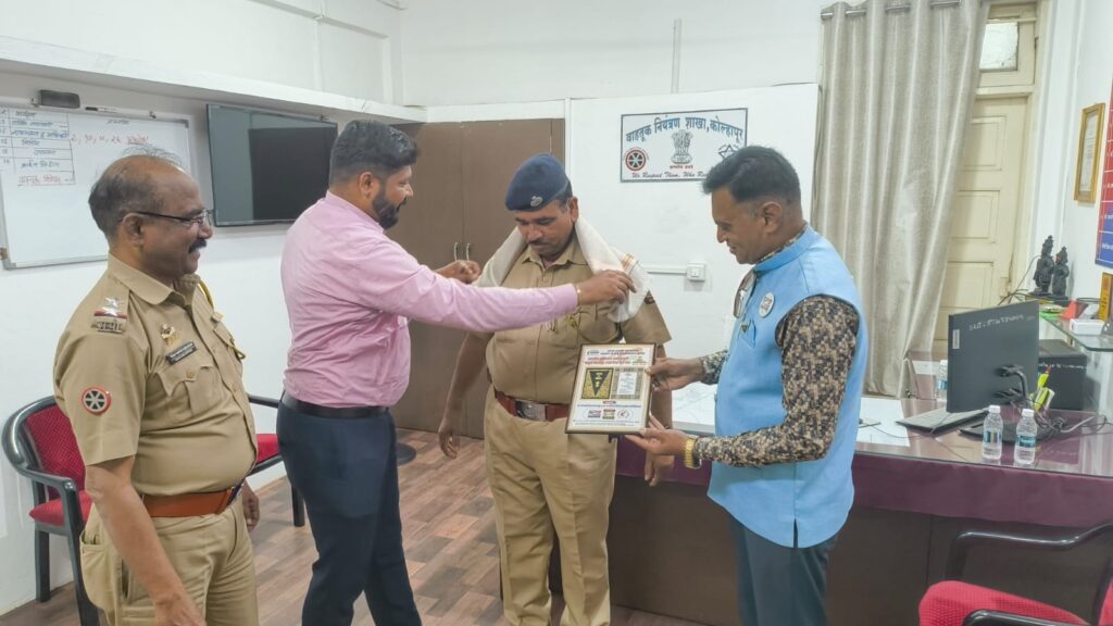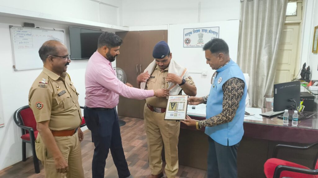 याच साखळीतील एक महत्वाचा सन्मान आज कोल्हापूर आरटीओ कार्यालयातील पोलीस उपनिरीक्षक राजाराम बर्गे यांना प्रदान करण्यात आला. आपल्या कार्यात अत्यंत शिस्तबद्ध, पारदर्शक आणि प्रामाणिकपणे कर्तव्य बजावणारे अधिकारी म्हणून राजाराम बर्गे यांची ओळख आहे. शहरातील विविध चौकांमध्ये वाहतूक शिस्त राखणे, जनतेशी संवाद साधून नियमांविषयी जागृती करणे तसेच वाहनचालकांना कायद्याचे पालन करण्यास प्रवृत्त करणे या सर्व क्षेत्रांत त्यांनी आपली वेगळी छाप पाडली आहे.