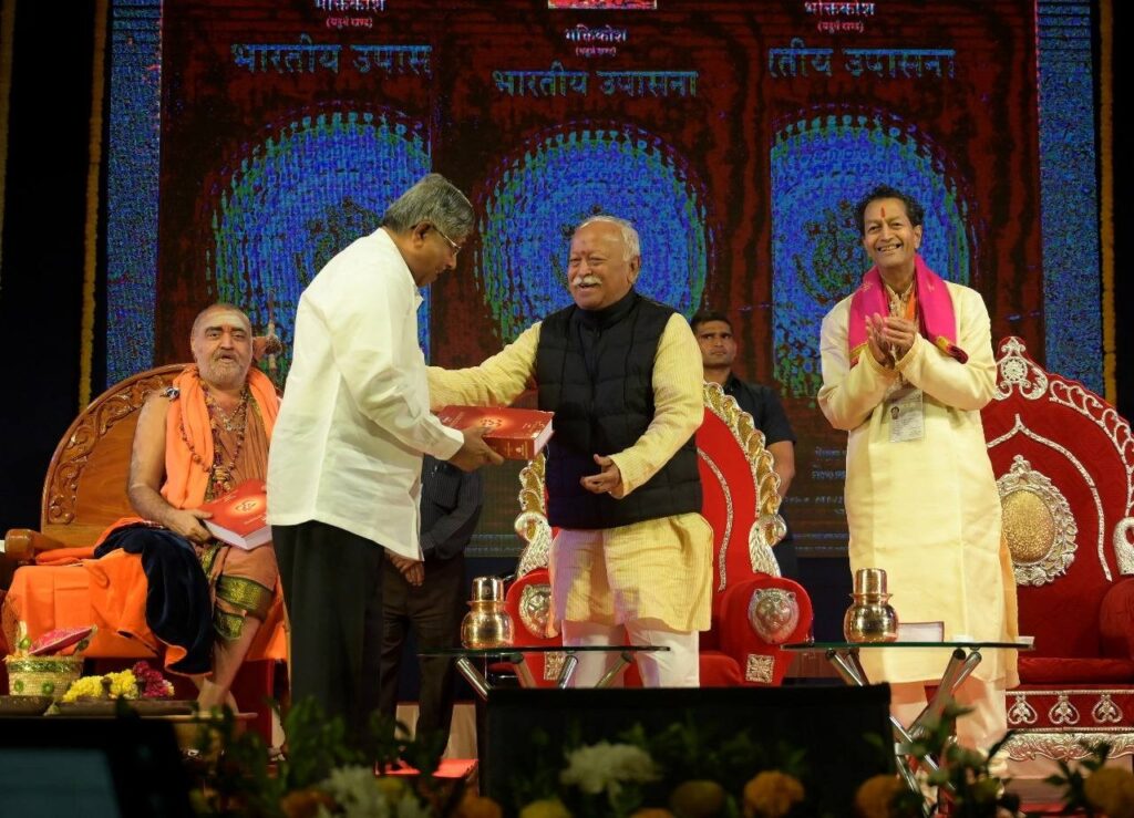 विश्वकल्याणाची पताका फडकविणारे श्रीराममंदिर उभे राहिले. आता पूर्वीपेक्षा अधिक भव्य, सामर्थ्यसंपन्न आणि सुंदर राष्ट्रमंदिर उभे करायचे आहे, असा विश्वास राष्ट्रीय स्वयंसेवक संघाचे सरसंघचालक डॉ. मोहन भागवत यांनी यावेळी व्यक्त केला. आपल्याच समाजाचे कार्य करणाऱ्या राष्ट्रीय स्वयंसेवक संघात उपकाराची अथवा अहंकाराची भावना नाही,असेही ते म्हणाले. संघाला संपूर्ण समाजाचे संघटन अभिप्रेत आहे. कारण समाज संघटित झाला तरच राष्ट्र वैभवसंपन्न होईल. राष्ट्र बलसंपन्न झाले तरच विश्वाला सुखशांती लाभेल. यातही देशाचे कल्याण संघच करेल, अशी आमची वल्गना नाही. तर समाज उभा राहिला तरच देश उभा राहील.” कठीण काळामध्ये समाजानेच संघाला साथ दिली, म्हणून संघ मोठा झाल्याचेही सरसंघचालक म्हणाले.