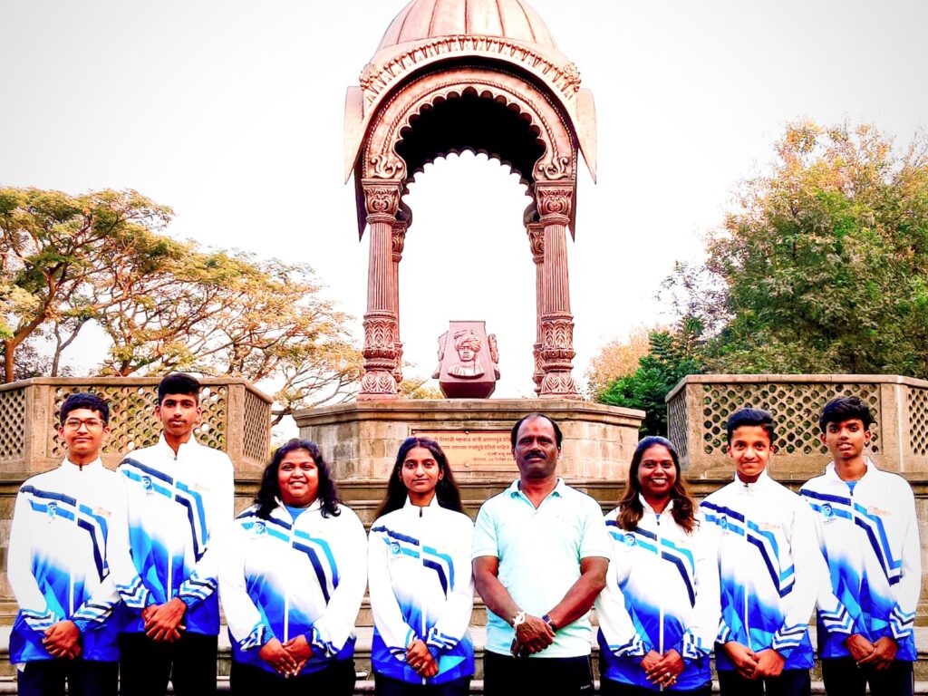 (वैजाक) आंध्र प्रदेश येथे होणाऱ्या ६३ व्या राष्ट्रीय अजिंक्यपद स्केटिंग स्पर्धेसाठी निवड झालेल्या खेळाडूंच्या समवेत आंतरराष्ट्रीय स्केटिंग प्रशिक्षक प्रा. डॉ महेश कदम, जगताप, आपके, पटेल, बराडे यांची राष्ट्रीय स्केटिंग स्पर्धेसाठी महाराष्ट्र संघात निवड कोल्हापूर:-रोलर स्केटिंग फेडरेशन ऑफ इंडिया यांच्या वतीने (वैझाक) आंध्र प्रदेश येथे ६ ते १५ डिसेंबर २०२५या कालावधीत होणाऱ्या ६३ व्या राष्ट्रीय अजिंक्यपद स्केटिंग स्पर्धेसाठी स्केटिग असोसिएशन ऑफ महाराष्ट्र यांच्या वतीने मुंबई, पुणे येथे राज्य अजिंक्यपद स्केटिंग स्पर्धा व निवड चाचणी घेण्यात आली. यातून महाराष्ट्र राज्याचा संघ निवडण्यात आला. यामध्ये आमच्या कोल्हापूर जिल्हा रोलर स्केटिंग असोसिएशनच्या सात स्केटिंग खेळाडूंची महाराष्ट्र राज्याच्या स्केटिंग संघात निवड झाली आहे. निवड झालेले खेळाडू पुढील प्रमाणे रोलर हॉकी१)साकेत आपके २)श्लोक पटेल.३) हर्षवर्धन जगताप. रोलर डरबी ४) वीरश्री कदम (न्यू मॉडेल इंग्लिश स्कूल व ज्युनिअर कॉलेज). रोलर डर्बी ५) बराडे वेदांत (एफ. ए .आय) नालंदा कॅम्पस नागाळा पार्क) रोलर डरबी६) तेजस्विनी कदम.७) धनश्री कदम.या सर्वांची स्केटिंग असोसिएशन ऑफ महाराष्ट्र चे अध्यक्ष पी के सिंग यांनी निवड जाहीर केली वरील सर्वांचा जिल्हा संघटनेच्या वतीने राजश्री छत्रपती शाहू महाराज समाधी परिसर या ठिकाणी गौरव करून राष्ट्रीय स्पर्धेसाठी शुभेच्छा देण्यात आल्या. सर्वांना जिल्हा संघटनेचे अध्यक्ष अनिल कदम, ॲड.धनंजय पठाडे. प्राचार्य अभयकुमारजी साळुंखे. प्रा. आकाराम पाटील. यांचे मार्गदर्शन तर आंतरराष्ट्रीय स्केटिंग प्रशिक्षक प्रा. डॉ.महेश अभिमन्यू कदम. राष्ट्रीय कोच भास्कर कदम. यांचे प्रशिक्षण लाभले.माननीय, संपादकसो,——– वरील वृत्त आपल्या लोकप्रिय दैनिकात प्रसिद्ध करून सहकार्य करावे ही नम्र विनंती. (प्रा. डॉ.महेश कदम)