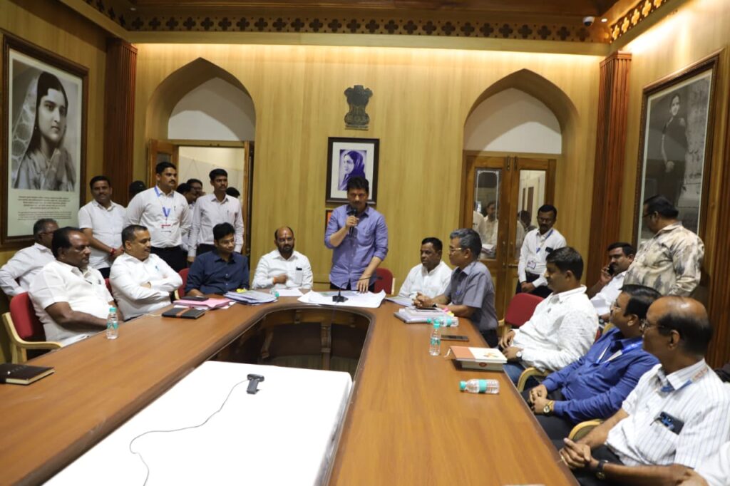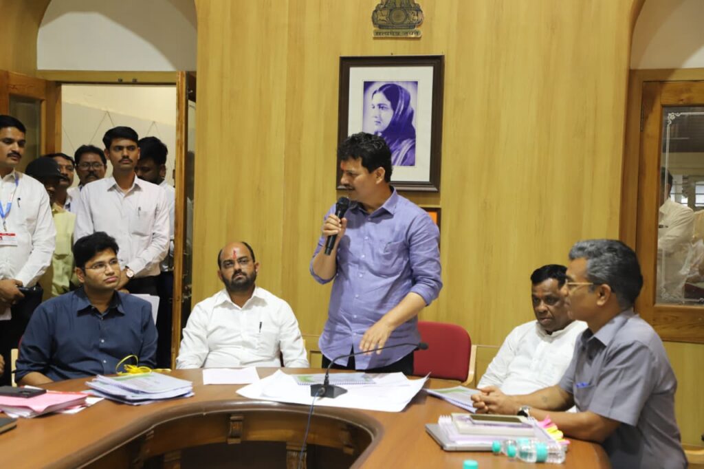 भूमी अभिलेख विभागातील एकूण सर्व १२०० गावठाणांचे गाव नकाशावर गावठाणापासून २०० मीटर परिघीय क्षेत्र चिन्हांकित करून २०० मीटर क्षेत्रात समाविष्ट गट नंबर व सर्वे नंबरच्या याद्या विशेष अभियान राबवून तयार केल्या असून त्या याद्यांचे प्रस्ताव पुढील कार्यवाहीसाठी संबंधित तालुक्याचे तहसीलदार यांच्याकडे हस्तांतरण पालकमंत्री महोदय यांच्या हस्ते आज करण्यात आले. यावेळी बोलताना पालकमंत्री प्रकाश आबिटकर.