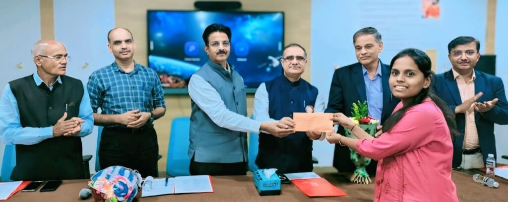 या प्रसंगी स्वतः प्रा. सी. डी. लोखंडे, डीन – डी. वाय. पाटील युनिव्हर्सिटी, कोल्हापूर यांच्या हस्ते कु. ऋतुजा यांचा यथोचित गौरव करण्यात आला.