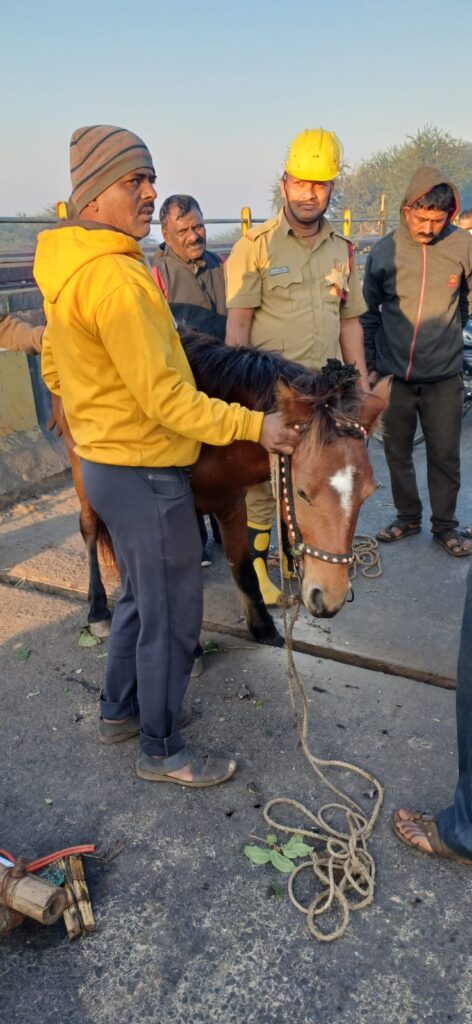 कोणीतरी तत्काळ अग्निशमन दलाला कळवले. फायरब्रिगेडचे जवान पोहोचले, औजारांनी, लीव्हरनी, तंत्राने… सर्वांनी मिळून घोड्याला वाचवण्याचा प्रयत्न केला. पण मिनिटागणिक वाढणारी थंडी, थरथरणारा घोडा, वेदनेने होणारी त्याची धडपड, आणि आजूबाजूला उभे असलेले असहाय नागरिक — सर्वच दृश्य असह्य करून गेले.