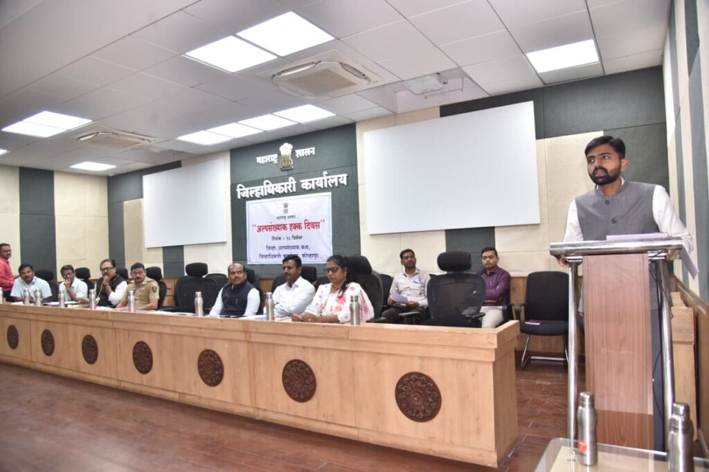 कोल्हापूर, दि. 18 (जिमाका) : अल्पसंख्याक समुदायासाठी राज्य व केंद्र शासनाच्या अनेक विविध योजना कार्यरत आहेत. या योजनांचा लाभ समुदायाने घेऊन स्व:हित साधावे, असे आवाहन जिल्हाधिकारी अमोल येडगे यांनी केले. महाराणी ताराबाई सभागृहात जिल्हा नियोजन विभाग व जिल्हा अल्पसंख्यांक कक्ष (जिल्हाधिकारी कार्यालय) यांच्या संयुक्त विद्यमाने आज अल्पसंख्यांक हक्क दिनाचे आयोजन करण्यात आले होते. यावेळी मार्गदर्शन करताना ते बोलत होते.