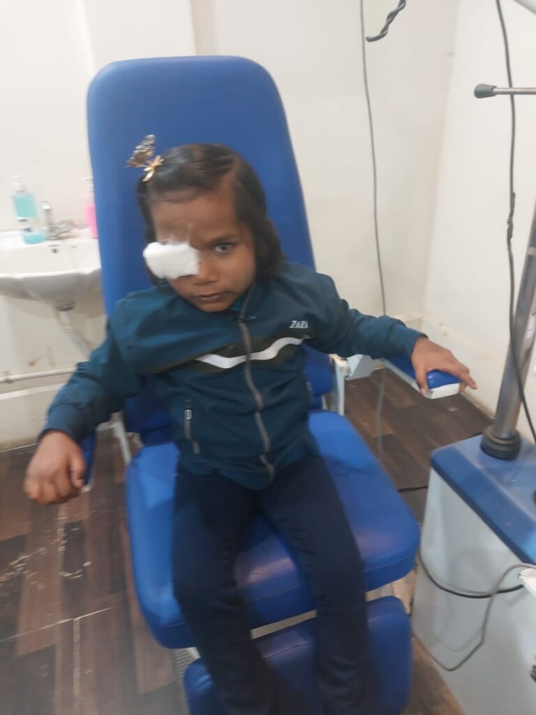 साक्षीला जन्मापासूनच मधुमेह असून दिवसातून दोन वेळा इन्सुलिन द्यावे लागते .सेटिंग काम करणारे तिचे वडील आणि घरकाम करणारी आई हे सरावाने ही जबाबदारी पार पाडत असतात. मधुमेह असल्याने शस्त्रक्रिया करणे हे मोठे आहवान होते. चैतन्य आय केअर फाउंडेशन – घरपण च्या अद्ययावत फिरत्या नेत्रतपासणी उपक्रमांतर्गत पन्हाळा तालुक्यातील जिल्हा परिषद शाळांमध्ये तपासणी सुरू असताना, सुमारे अडीच महिन्यांपूर्वी झालेल्या तपासणीत साक्षीला मोतीबिंदू असल्याचे निदर्शनास आले.