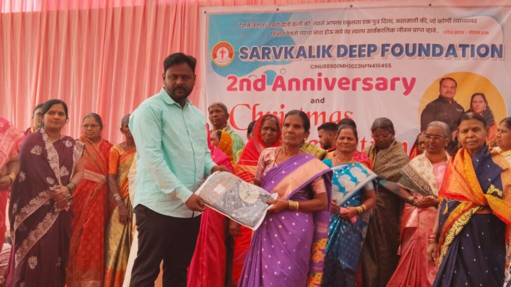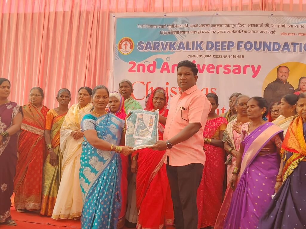 भादोले ता हातकणंगले येथील सार्वकालिक दिप फाउंडेशन यांच्या वतीने 2 रा वर्धापन दिन व ख्रिसमस निमित्त विविध कार्यक्रमाचे आयोजन करण्यात आले होते सकाळ पासून विविध उपक्रम राबविण्यात आले या कार्यक्रमाचे आयोजन पास्टर मनोहर चोपडे व सिस्टर अस्मिता चोपडे यांनी केले होते या कार्यक्रम प्रसंगी शुभेच्छा देताना सामाजिक कार्यकर्ते प्रकाश कांबळे म्हणाले कीसमाजामध्ये काम करीत असताना आपण समाजाचे काय देणे लागतंय हे सर्वांनी लक्षात ठेवलं पाहिजे कार्यक्रम मध्ये ख्रिसमस निमित्त प्रभू येशूची प्रार्थना करण्यात आली तर लहान मुलांनी सुंदर डान्स सादर केलेसार्वकालीक दीप फाउंडेशन चे सर्व लीडर व मंडळी उपस्थित होते, प्रमुख उपस्थिती भादोले ग्रामपंचायत माजी सदस्य विक्रम माने सदस्य अमोल कोळी सौ रूपाली कोळी जीनियस इंग्लिश मीडियम स्कूल चे महेश पोळ व मुख्याध्यापिका अर्पणा पोळ व व हिराई हॉस्पिटलचे डॉ. मिलिंद हिरवे व सौ आरती हिरवे उपस्थित होते ,