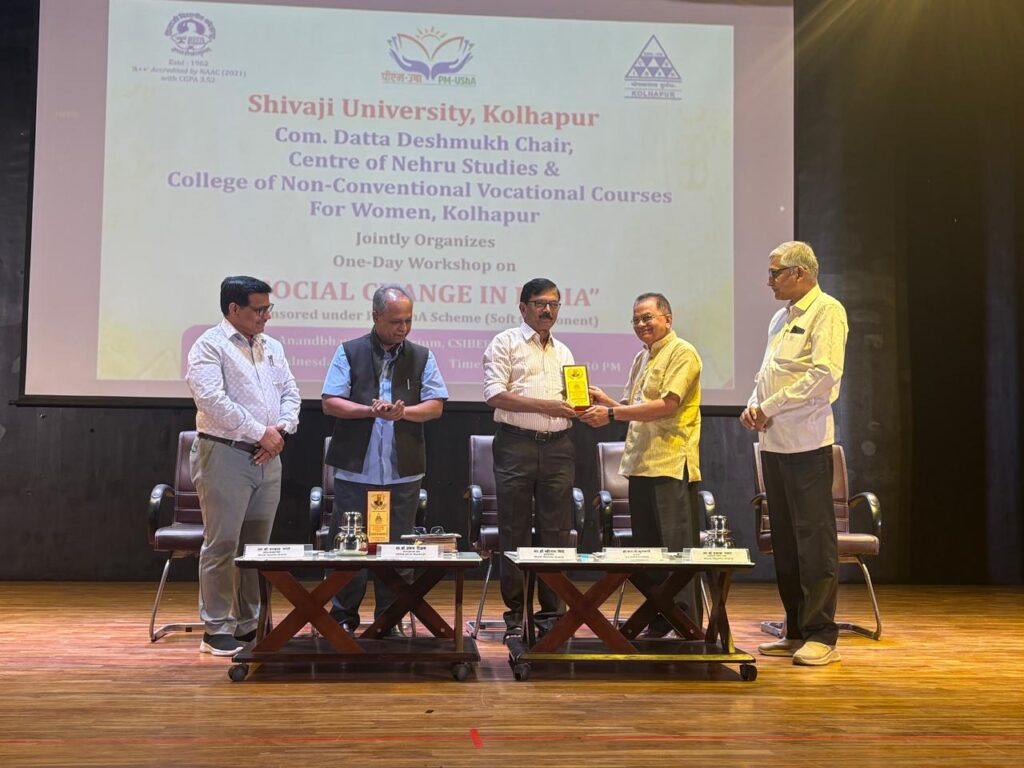 शिवाजी विद्यापीठाच्या अंतर्गत कॉ. दत्ता देशमुख अभ्यासकेंद्र, कॉलेज ऑफ नॉन कॉन्वेन्शनल व्होकेशनल कोर्सेस फॉर वुमन (CNCVCW), कोल्हापूर आणि नेहरू स्टडी सेंटर यांच्या संयुक्त विद्यमाने पी. एम. उषा अंतर्गत “भारतातील सामाजिक बदल” या विषयावर आयोजित एकदिवसीय कार्यशाळा आज, दिनांक ३१ डिसेंबर २०२५ रोजी यशस्वीरीत्या पार पडली.कार्यशाळेचे उद्घाटन सकाळी १०.०० वाजता माननीय डॉ. अभय टिळक (अध्यक्ष, संत तुकाराम महाराज अध्यासन, सावित्रीबाई फुले पुणे विद्यापीठ), प्रा. डॉ. प्रकाश पवार (प्रमुख, राज्यशास्त्र विभाग, शिवाजी विद्यापीठ, कोल्हापूर) आणि डॉ. वी. एन. शिंदे (कुलसचिव, शिवाजी विद्यापीठ, कोल्हापूर) यांच्या हस्ते झाले.प्रा. डॉ. प्रकाश पवार यांनी कार्यक्रमाचा प्रस्ताव मांडत सामाजिक बदल हा महोत्सवाच्या स्वरूपात साजरा होण्यामागील भूमिका स्पष्ट केली. कार्यक्रमाच्या अध्यक्षस्थानी डॉ. आर. जी. कुलकर्णी, मुख्याध्यापक, CNCVCW होते.पहिल्या सत्रात माननीय डॉ. अभय टिळक यांनी “भक्ती चळवळ : धर्म आणि अध्यात्म” या विषयावर मार्गदर्शन करत अध्यात्मिक बदल व सामाजिक सुधारणांवर प्रकाश टाकला. त्यांनी महात्मा फुले, न्यायमूर्ती रानडे तसेच डॉ. रामकृष्ण गोपाळ यांच्या विचारांचे संदर्भ दिले. अध्यक्षीय मनोगतात डॉ. वी. एन. शिंदे यांनी चांगला नागरिक होणे हेच खऱ्या अर्थाने धर्माचे पालन असल्याचे नमूद करत सामाजिक बदल, नैतिकता आणि जबाबदारीचे महत्त्व अधोरेखित केले.दुसऱ्या सत्रात (सकाळी ११ ते १२) ज्येष्ठ राजकीय विचारवंत डॉ. अशोक चौसाळकर यांनी “विसाव्या शतकातील धर्मचिंतन” या विषयावर सखोल विवेचन केले. धर्मचिंतनाची संकल्पना, त्याचे सामाजिक महत्त्व आणि विविध उदाहरणे त्यांनी मांडली. या सत्राचे अध्यक्ष श्री श्रीरंग गायकवाड, संपादक, दैनिक ‘तरुण भारत’ होते. त्यांनी संत ज्ञानेश्वर, संत चोखामेळा यांसारख्या थोर संतांचे अभंग व ओव्यांचा संदर्भ देत आजच्या युगातील त्यांचे महत्त्व विशद केले.तिसऱ्या सत्रात (दुपारी १२ ते १) ज्येष्ठ साहित्यिक व विचारवंत डॉ. सुनील कुमार लवटे यांनी “हिंदी साहित्य आणि धर्मचिंतन” या विषयावर व्याख्यान दिले. हिंदी साहित्यातील संतकाव्य, भक्तिसाहित्य व आधुनिक साहित्याने समाजात नैतिकता, समता आणि मानवतावादाची मूल्ये कशी रुजवली यावर प्रकाश टाकला. या सत्राचे अध्यक्षीय मनोगत प्रा. डॉ. प्रकाश पवार यांनी मांडले.शेवटच्या सत्रात (दुपारी १.३० ते २.३०) सामाजिक कार्यकर्ते श्री संदीप पाटील यांनी “सामाजिक बदल : पाणी आणि वीज कामगारांचे प्रश्न” या विषयावर आपले विचार मांडले. पाणी व वीज कामगारांच्या सुरक्षितता, कामाचे तास, वेतन आणि सामाजिक सन्मान यासंबंधी असलेल्या अडचणी अधोरेखित केल्या. अध्यक्षीय मनोगत प्रा. 