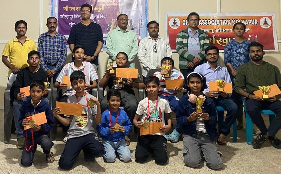 कोल्हापूरचा वेंकटेश खाडे पाटील उपविजेता तर अर्णव पोर्लेकर तृतीय कोल्हापूर सोमवार दिनांक 5 जानेवारी :- अयोध्या टॉवर, दाभोळकर कॉर्नर, कोल्हापूर येथे चेस असोसिएशन कोल्हापूर ने आयोजित केलेल्या कोल्हापूर जिल्हा खुल्या अमॅच्युर निवड बुद्धिबळ स्पर्धेत अग्रमानांकित इचलकरंजीच्या शौर्य बगडीया ने सात पैकी सहा गुण व 31 टायब्रेक गुण मिळवून अजिंक्यपद पटकाविले. अग्रमानांकित कोल्हापूरचा व्यंकटेश खाडे पाटील ने सहा गुण व 29 टायब्रेक गुणासह उपविजेतेपद मिळविले तर दहावा मानांकित कोल्हापूरचा अर्णव पोर्लेकर सहा गुण व 28 टायब्रेक गुण घेत तृतीय स्थान निश्चित केले. तन्मय पवार (इचलकरंजी), प्रज्वल मुधाळे (हुपरी) व संस्कार काटकर (कोल्हापूर) हे तिघेजण साडेपाच गुण व सरस टायब्रेक गुणानुसार अनुक्रमे चौथ्या, पाचव्या व सहाव्या स्थानी आले. या सहा जणांची निवड रत्नागिरी येथे 16 ते 18 जानेवारी दरम्यान होणाऱ्या महाराष्ट्र राज्य खुल्या अमॅच्युर निवड आंतरराष्ट्रीय गुणांकन बुद्धिबळ स्पर्धेसाठी कोल्हापूर जिल्हा संघात करण्यात आली आहे. स्विस लीग पद्धतीने एकूण सात फेऱ्यात घेण्यात आलेल्या या निवड स्पर्धेत कोल्हापूर जिल्ह्यातील नामांकित 76 बुद्धिबळपटू सहभागी झाले होते.या स्पर्धेसाठी युनिव्हर्सल सेक्युरिटी सिस्टीम चे कॅप्टन उत्तम पाटील यांचे बहुमोल सहकार्य लाभले. स्पर्धेचा बक्षीस समारंभ विनय ठक्कर व प्रियांका ढोले यांच्या शुभ हस्ते करण्यात आला.यावेळी आंतरराष्ट्रीय पंच भरत चौगुले, फिडे इन्स्ट्रक्टर मनिष मारुलकर, उपाध्यक्ष धीरज वैद्य, वरिष्ठ राष्ट्रीय पंच रोहित पोळ व विजय सलगर उपस्थित होते. उत्तेजनार्थ बक्षीसे उत्कृष्ट महिला बुद्धिबळपटू 1) स्नेहल गावडे कोल्हापूर 2) वेदिका मदने कोल्हापूर 3) हर्षदा सूर्यवंशी पाटील कोल्हापूर पंधरा वर्षाखालील उत्कृष्ट – राजदीप पाटील कोल्हापूर, तेरा वर्षाखालील उत्कृष्ट – सिद्धी कर्वे जयसिंगपूर, अकरा वर्षाखालील उत्कर्ष – वन्शील ठक्कर कोल्हापूर , नऊ वर्षाखालील उत्कृष्ट अद्वैत कुलकर्णी कोल्हापूर व सात वर्षाखालील उत्कृष्ट – रिशान पिळणकर कोल्हापूर