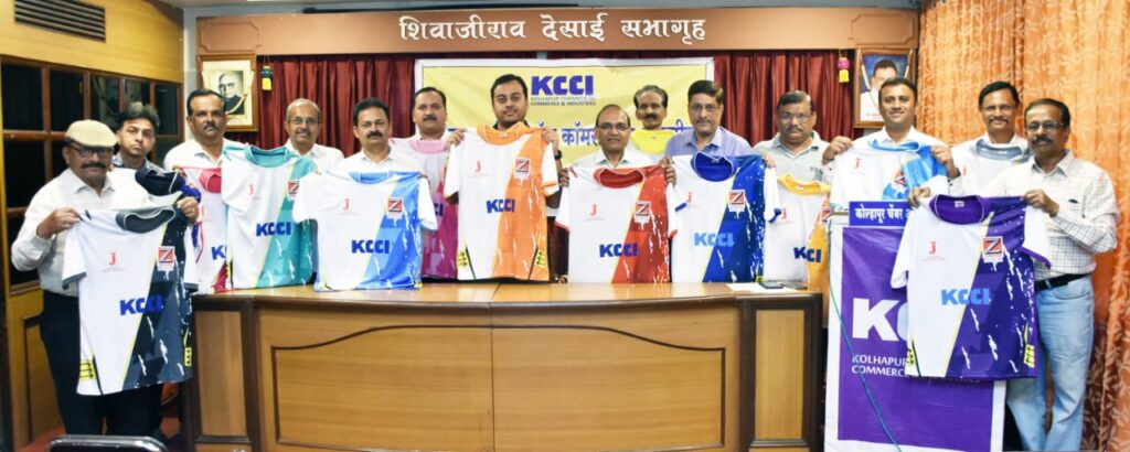 कोल्हापूर दि. ५ : कोल्हापूर चेंबर ऑफ कॉमर्स अँड इंडस्ट्रीजच्या वतीने संलग्न संघटना यांचेमध्ये झंवर ग्रुप पुरस्कृत चेंबर चषक क्रिकेट स्पर्धेचे दि. ९, १० व ११ जानेवारी २०२६ रोजी शास्त्रीनगर मैदान, कोल्हापूर येथे आयोजन केले आहे. आज टी शर्टचे अनावरण झंवर ग्रुप ऑफ इंडस्ट्रीज चे व्यवस्थापकीय संचालक नीरज झंवर यांच्या हस्ते करण्यात झाले. स्पर्धेमध्ये १७ व्यापारी व औद्योगिक संघांनी भाग घेतला आहे. स्पर्धेसाठी मुख्य प्रायोजक झंवर ग्रुप असून जाधव इंडस्ट्रीज सह प्रायोजक आहेत. तर कोल्हापूर हॉटेल मालक संघ, अमित आर मेडिकल, इव्हेंट मॅनेजमेंट एजन्सीज असोसिएशन, संजय घोडावत ग्रुप, वर्धमान इलेक्ट्रीकल्स, रिटा आईस्क्रीम फॅक्टरी यांचे विशेष सहकार्य लाभले आहे. स्पर्धेचे उद्घाटन शुक्रवार दि. ९ जानेवारी रोजी सकाळी ९.०० वा. मालोजीराजे छत्रपती यांच्या हस्ते तर बक्षीस वितरण रविवार दि. ११ जानेवारी रोजी दुपारी ४.०० वाजता खासदार धनंजय महाडिक यांच्या हस्ते होणार आहे.