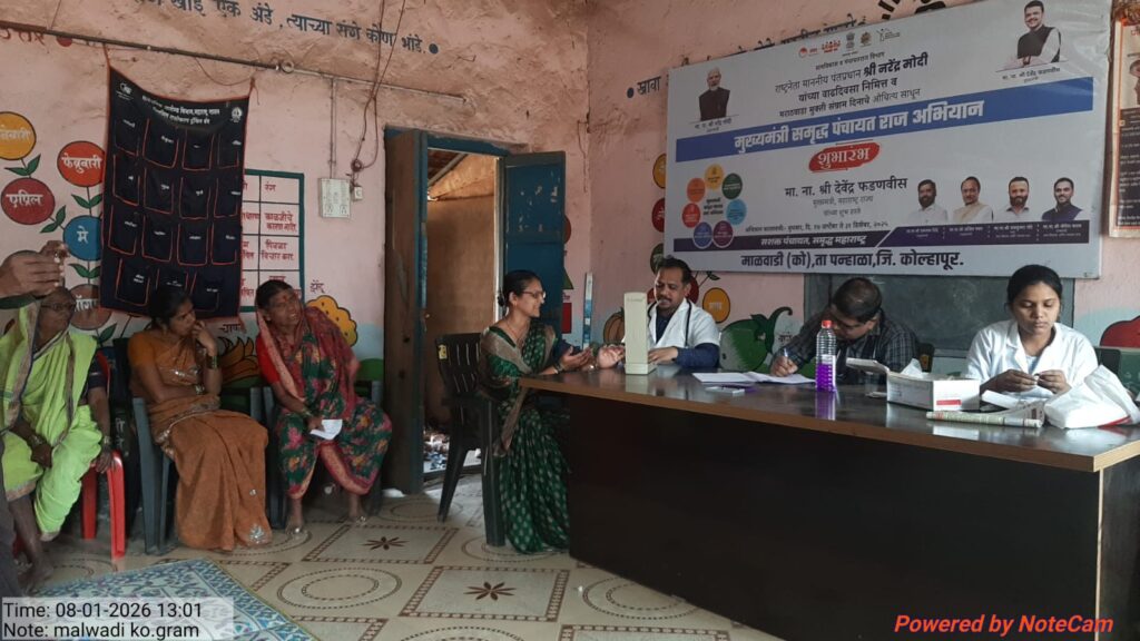 मुख्यमंत्री समृद्ध पंचायत अभियानाच्या माध्यमातून ग्रामविकासाला चालना देत ग्रामपंचायत माळवाडी (को.) यांच्या वतीने रेणुका मल्टिप्लेक्स हॉस्पिटल व गद्रे नेत्र रुग्णालय यांच्या संयुक्त विद्यमाने भव्य आरोग्य शिबिराचे आयोजन करण्यात आले. या शिबिरास ग्रामस्थांचा उत्स्फूर्त प्रतिसाद लाभला.