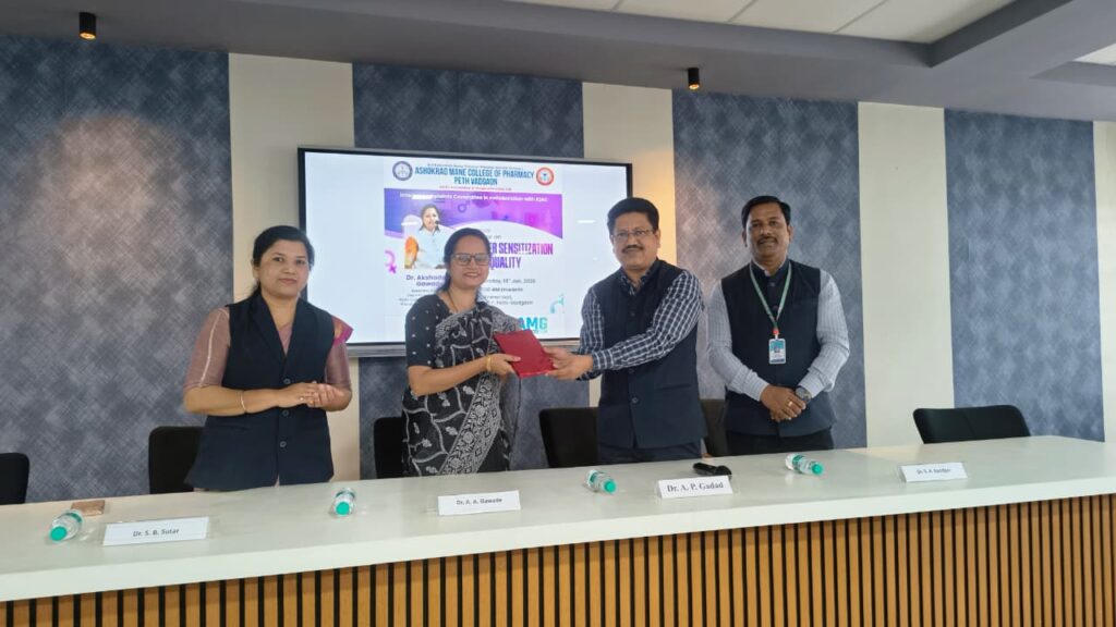 पेठवडगाव येथील अशोकराव माने कॉलेज ऑफ फार्मसी येथे अंतर्गत तक्रार समिती (आयसीसी) यांच्या सहकार्याने ‘लैंगिक संवेदनशीलता आणि समानता’ या विषयावर आयोजित परिसंवादात त्या प्रमुख वक्त्या म्हणून बोलत होत्या.