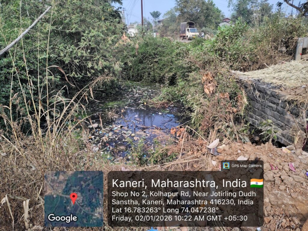 कणेरी रोडलगत असलेल्या या ऐतिहासिक विहिरीमध्ये दि. २२ डिसेंबर २०२५ रोजी जिल्हा परिषदेच्या हद्दीतील मुख्य वर्दळीच्या रस्त्यावर ठेकेदार श्री. निलेश घाटगे यांनी कोणतीही परवानगी न घेता खोदकाम करत मोठा सिमेंट नळा बसवून दुसऱ्या बाजूच्या नाल्यातील सांडपाणी आणि गाळ थेट विहिरीत सोडल्याचा गंभीर आरोप करण्यात आला आहे. परिणामी, विहिरीतील पाणी अक्षरशः विषारी बनले असून, जलचर प्राण्यांचा अधिवास नष्ट होण्याच्या मार्गावर आहे.
