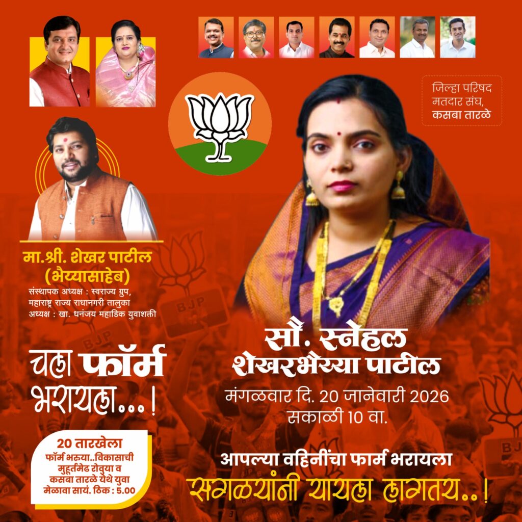 शेखर भैय्यासाहेब पाटील यांनी पुढे सांगितले की, “कसबा तारळे मतदारसंघाचा सर्वांगीण विकास, रस्ते, पाणीपुरवठा, आरोग्य सेवा, शिक्षण सुविधा आणि शेतकऱ्यांच्या प्रश्नांना प्राधान्य देणे हे सौ. स्नेहल पाटील यांचे मुख्य उद्दिष्ट आहे. भाजपचे विकासात्मक धोरण आणि केंद्र व राज्य सरकारच्या योजनांचा लाभ तळागाळातील नागरिकांपर्यंत पोहोचवण्यासाठी त्या कटिबद्ध आहेत.”