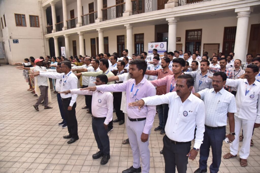 कोल्हापूर, दि. २३ : २५ जानेवारी या १६ व्या ‘राष्ट्रीय मतदार दिना’च्या निमित्ताने संपूर्ण देशभर विविध कार्यक्रमांचे आयोजन करण्यात येत आहे. याच पार्श्वभूमीवर, कोल्हापूरचे जिल्हाधिकारी अमोल येडगे यांनी जिल्हाधिकारी कार्यालय प्रांगणात प्रशासनातील सर्व अधिकारी व कर्मचाऱ्यांसह मतदानाची सामूहिक प्रतिज्ञा घेतली.