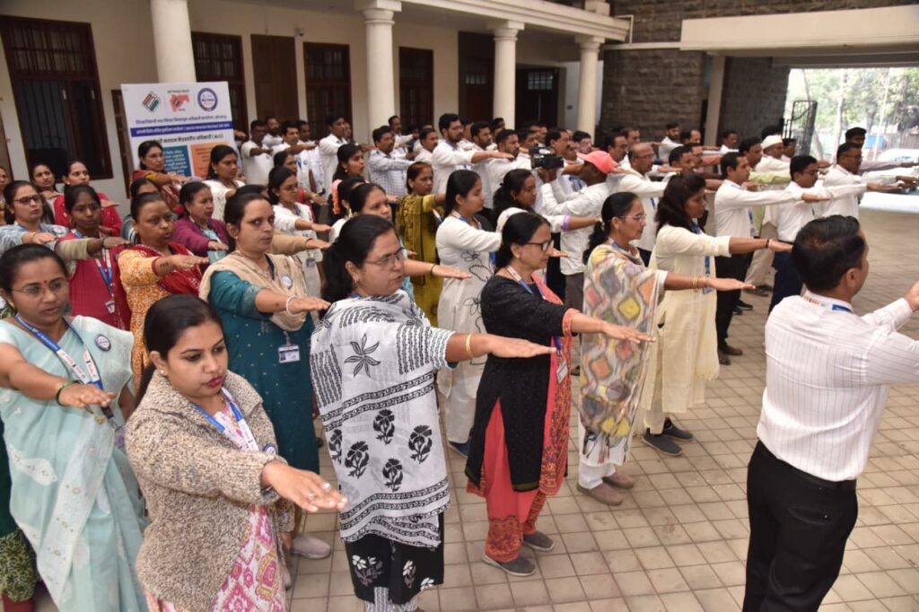 यावेळी उपजिल्हाधिकारी (निवडणूक) गीता गायकवाड, निवासी उपजिल्हाधिकारी गजानन गुरव, उपजिल्हाधिकारी (महसूल) डॉ. संपत खिलारी, जिल्हा माहिती अधिकारी सचिन अडसूळ, नायब तहसीलदार जयंत गुरव यांच्यासह जिल्हाधिकारी कार्यालयातील विविध विभागांचे अधिकारी व कर्मचारी मोठ्या संख्येने उपस्थित होते.