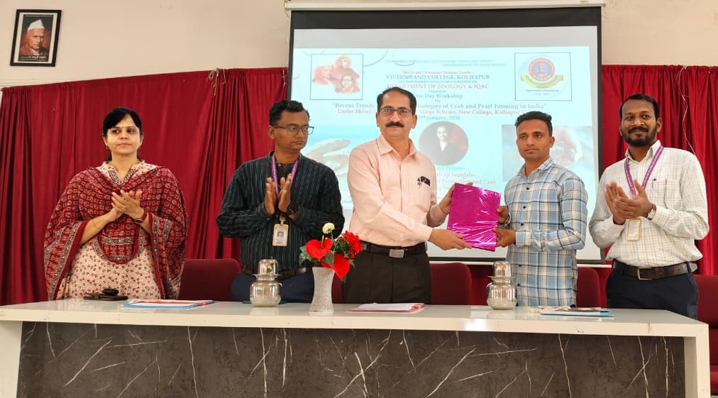 कोल्हापूर :खेकडा व मोती संवर्धन ही क्षेत्रे शाश्वत जलजीव संवर्धन, ब्लू इकॉनॉमी तसेच ग्रामीण व किनारपट्टी उद्योजकतेच्या दृष्टीने अत्यंत महत्त्वाची असून, योग्य वैज्ञानिक प्रशिक्षण, आधुनिक तंत्रज्ञान आणि बाजारपेठेचे ज्ञान मिळाल्यास या क्षेत्रात स्वयंरोजगाराच्या मोठ्या संधी उपलब्ध होऊ शकतात, असे प्रतिपादन कार्यशाळेचे प्रमुख मार्गदर्शक श्री. मयूर जगदाळे यांनी केले.श्री स्वामी विवेकानंद शिक्षण संस्थेचे विवेकानंद महाविद्यालय, कोल्हापूर येथील प्राणीशास्त्र विभाग व अंतर्गत गुणवत्ता हमी कक्ष (IQAC) यांच्या संयुक्त विद्यमाने, शिवाजी विद्यापीठाच्या लीड कॉलेज योजनेअंतर्गत (न्यू कॉलेज, कोल्हापूर क्लस्टर)“भारतातील खेकडा व मोती संवर्धनातील आधुनिक कल व विपणन धोरणे” या विषयावर एकदिवसीय शास्त्रीय कार्यशाळा महाविद्यालयाच्या लायब्ररी हॉलमध्ये यशस्वीपणे पार पडली.कार्यशाळेत मार्गदर्शन करताना श्री. जगदाळे यांनी खेकडा पालनातील आधुनिक व शाश्वत तंत्रज्ञान, मोती संवर्धनातील उदयोन्मुख वैज्ञानिक पद्धती, मूल्यवर्धन प्रक्रिया तसेच विपणनातील संधी यावर संशोधनाधारित व सखोल मार्गदर्शन केले. विद्यार्थ्यांचा व संशोधकांचा या तांत्रिक सत्रांना उत्स्फूर्त प्रतिसाद लाभला.कार्यशाळेचे उद्घाटन मा. अध्यक्ष व प्राचार्य डॉ. एस. पी. थोरात यांच्या हस्ते झाले. प्रास्ताविकात डॉ. टी. सी. पाटील यांनी कार्यशाळेची वैज्ञानिक भूमिका, उद्दिष्टे तसेच लीड कॉलेज योजनेचे शैक्षणिक महत्त्व स्पष्ट केले. यावेळी IQAC समन्वयक प्रा. श्रुती जोशी व लीड कॉलेज समन्वयक डॉ. व्ही. बी. वाघमारे उपस्थित होते. अध्यक्षीय भाषणात डॉ. थोरात यांनी कौशल्याधारित व उद्योगाभिमुख शिक्षणाच्या माध्यमातून ब्लू इकॉनॉमी विकसित करण्यासाठी खेकडा व मोती संवर्धन क्षेत्रांचे आर्थिक व वैज्ञानिक महत्त्व अधोरेखित केले. उद्घाटन सत्राचा समारोप डॉ. टी. सी. गौपाले यांच्या आभार प्रदर्शनाने झाला.तांत्रिक सत्रांचा परिचय प्रा. गणेश एच. फडके यांनी करून दिला, तर आभारप्रदर्शन प्रा. एन. ए. जाधव यांनी केले. दुपारी झालेल्या समारोप कार्यक्रमात कार्यशाळेचा सविस्तर अहवाल प्रा. एन. ए. पटेल यांनी सादर केला. यावेळी विद्यार्थ्यांनी आपल्या शैक्षणिक व प्रात्यक्षिक अनुभवांचे मनोगत व्यक्त केले. सहभागी विद्यार्थ्यांना प्रमाणपत्रांचे वितरण करण्यात आले. संपूर्ण कार्यक्रमाचे सूत्रसंचालनही प्रा. पटेल यांनी केले.कार्यशाळेच्या यशस्वी आयोजनासाठी प्राणीशास्त्र विभागप्रमुख डॉ. जी. के. सोनटक्के यांच्या मार्गदर्शनाखाली प्राध्यापक व विद्यार्थ्यांनी विशेष परिश्रम घेतले. विविध महाविद्यालयांतील विद्यार्थी व शिक्षकांनी मोठ्या संख्येने सहभाग नों