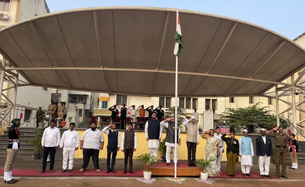 मा. प्राचार्य अभयकुमार साळुंखे यांच्या हस्ते ध्वजारोहण करण्यात आले. यानंतर एन.सी.सी.च्या विद्यार्थ्यांनी शानदार परेड संचलन व प्रात्यक्षिके सादर करून उपस्थितांची मने जिंकली.