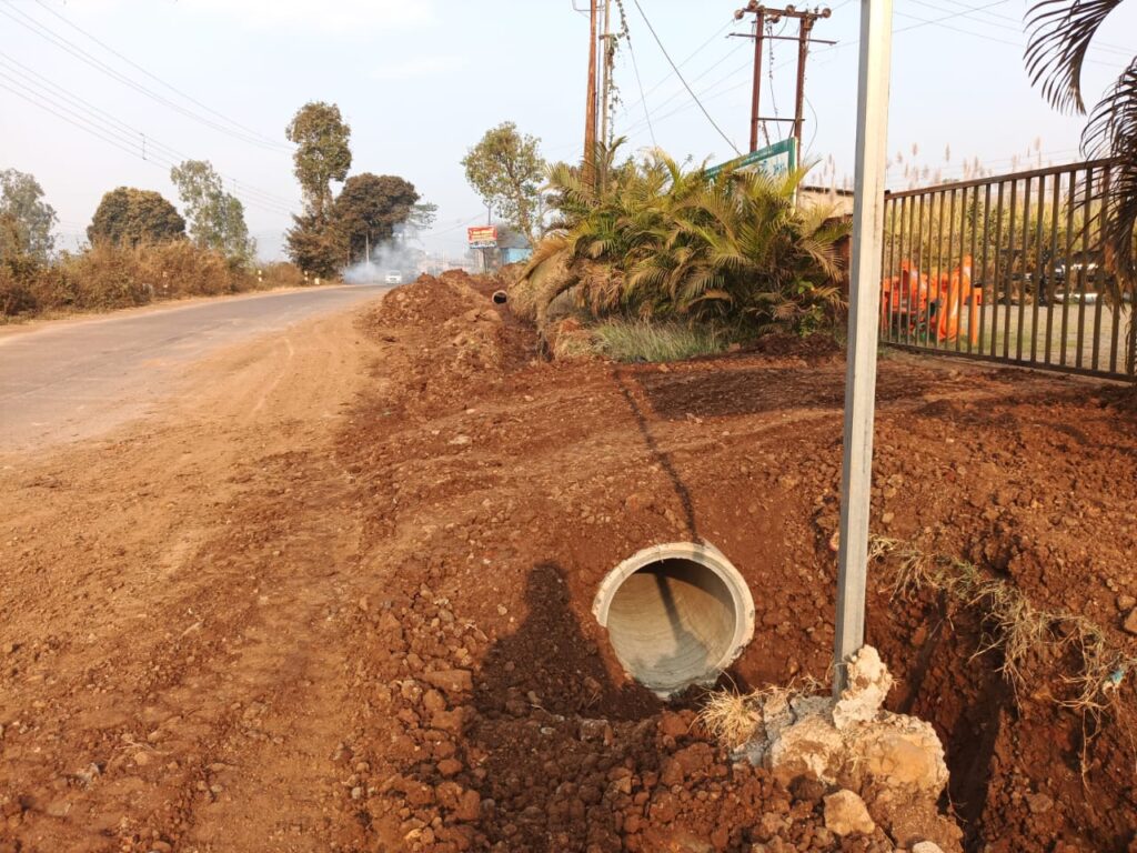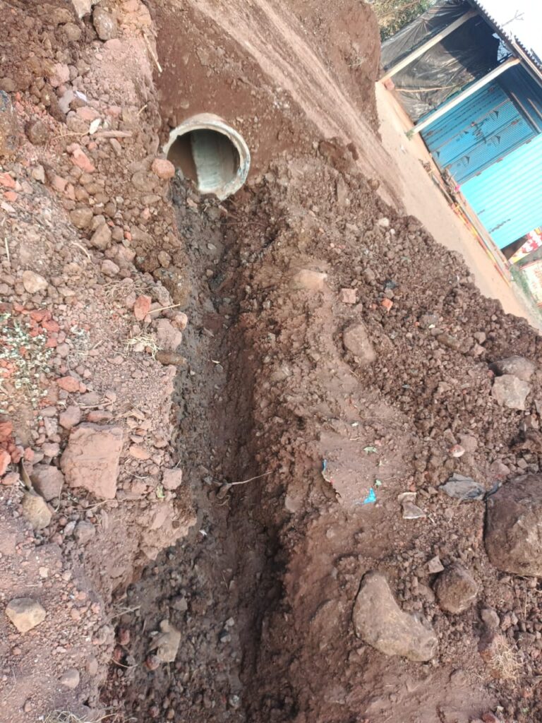 फोटो ओळ निवडे नांदगाव येथे बांधकाम गटारी मंजूर असताना पाईप टाकून गटारी केल्या आहेत.