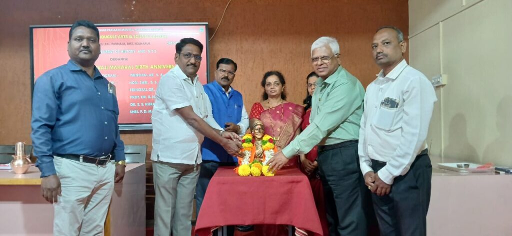 श्रीपतराव चौगुले कॉलेजमध्ये छत्रपती शिवाजी महाराज जयंतीनिमित्त प्रतिमेचे पूजन करताना डॉ. जे. के. पवार समवेत शिवाजीराव पाटील, डॉ. विजयकुमार पाटील, डॉ. उषा पवार, प्रा. पी. डी. माने, डॉ. संपदा पिसे, सुरेश पाटील व मान्यवर.