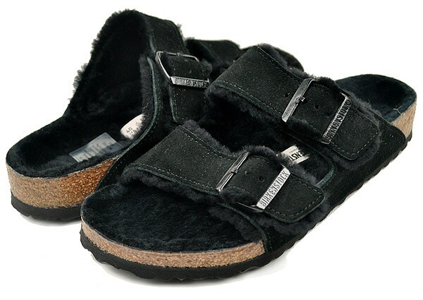 アリゾナ シアリング レギュラーフィット ブラック スエードレザー ラムスキンボア サンダル ベロア 752661